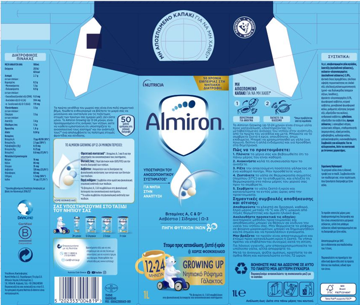 Το Almiron Growing Up 12-24 της NUTRICIA σε υγρή μορφή διατίθεται σε: